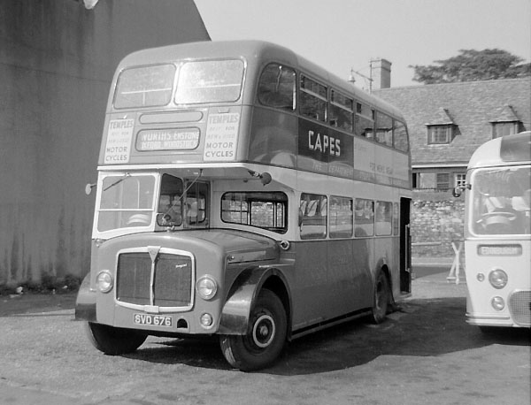Worth's of Enstone SVD 676, 1959 AEC Regent V MD3RV532 with Massey L31/28R body, new to Greenshields of Salsburgh, at Gloucester Green on 31st August 1962. At the time a very modern bus for Worth's. Note the wierd contraption rigged up to enable the driver to change the destination blind from the cab! |