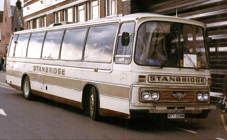 Duple (NTY 226M) of Stanbridge Motor Services, seen in Poole in 1991.