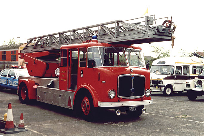 Date: 27th April 2003 Event/Location: Emergency Services Day, Pump House Transport Museum, London E17 Description: Ex Croydon Fire Brigade Merryweather turntable ladder on GM4R Mercury chassis, maintained in full working order by Firefighter Mike Cotton & co at A21 Paddington Fire Station. Photo © Peter Newman 2003 and used with permission. |