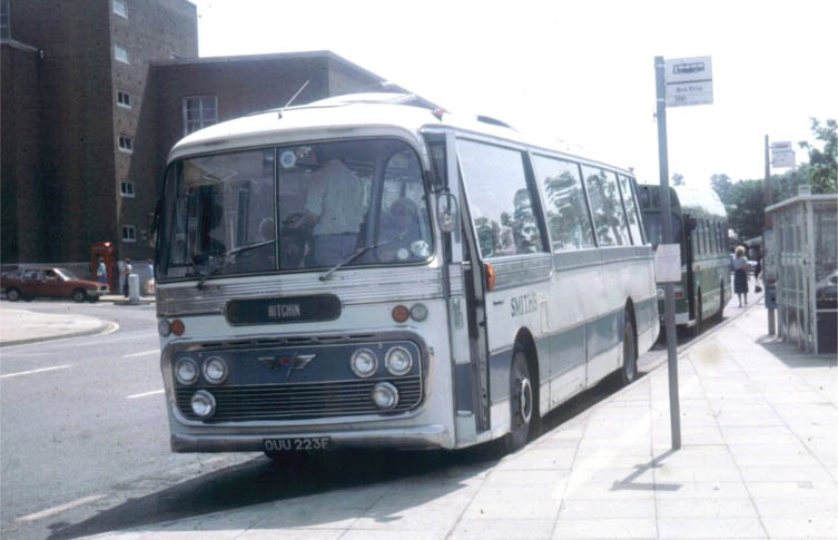Description: A rare vehicle, new as a non-psv with the Royal Opera, this Reliance is seen at Hitchin with Smith's of Buntingford.