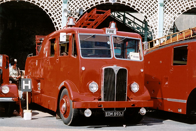 Date: 4th May 2003 Event/Location: Madeira Drive, 42nd London-Brighton Run Description: 1950 Maudslay Regent III dual-purpose appliance which served on the Isle of Man at Douglas Fire Station until 1971. Its original registration, NMN50, is sometimes displayed at rallies held off the public highway. Photo © Peter Newman 2003 and used with permission.