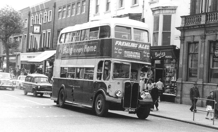 Date: 7th September 1963 Event/Location: Terminus Road, Eastbourne Description: Eastbourne 21, 1947 AEC Regent III 0961895 with Weymann H28/22R body. Fine example of the classic AEC/Weymann combination. Photo © Peter Newman 1963/2003 and used with permission.