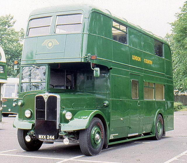 | London Country 581J (MXX 244) Mobile Uniform Issue Unit was converted from RLH 44 in 1970, recalling LT's four bygone 4RF4s similarly converted in early 1967. The suffix letter 'J' in '581J' stood for AEC Regent, as it had done in LT's Service Vehicle fleet since the early 1930s. Fortunately 581J has been preserved, and was photographed at Staines in 1995. Note the RFW class Regal IV (with Eastern Coach Works body) in the background. [ 1952 AEC Regent III 9613E6952 ] |