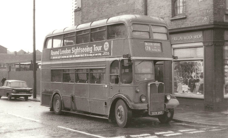 (MXX 257) from Dalston (D) Garage was photographed on 16th April 1971, the last day of RLH operation. This RLH is soon to leave the Maryland stand in Well Street on the run back to the garage. [ 1952 AEC Regent III 9613E6980 ]