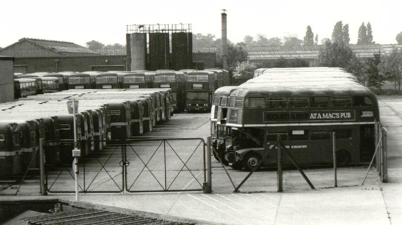 Description: The ex-London Country Routemasters have been joined by withdrawn LT SMSs and brand new Leyland Titan Ts.